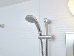 壁面と床面には柔らかな表情を湛えた気品を漂わせるタイルを採用。